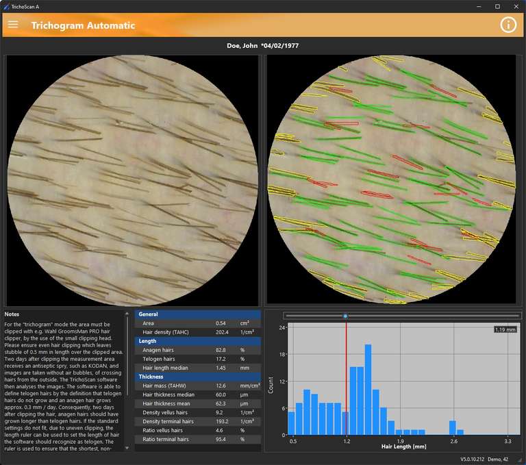 La Tricoscopia Digital es una técnica de diagnóstico por imagen que nos permite examinar minuciosamente el cuero cabelludo y los folículos pilosos sin necesidad de procedimientos invasivos. TrichoScan es una herramienta pionera en este campo, siendo el primer tricograma computarizado disponible a nivel mundial que calcula parámetros clave del crecimiento capilar de manera rápida y precisa.